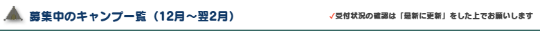 | ✔ 受付状況 ○ 募集中 △ 残りわずかor キャンセル待ち上位 ▲ キャンセル待ち下位 × 募集終了 |