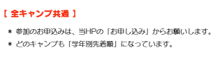 * どのキャンプも「学年別先着順」になっています。