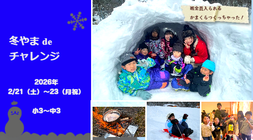- ○備後 どきどきウインターキャンプ(1/4-6)⇒(2/21-23に延期)冬やまdeチャレンジと同時開催へ