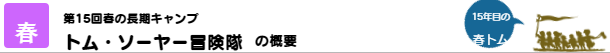 「春の長期キャンプ トム・ソーヤー冒険隊」は、新小学4年生~新中学3年生(現小3~現中2)が対象の「自然体験キャンプ」+「冒険体験キャンプ」です。